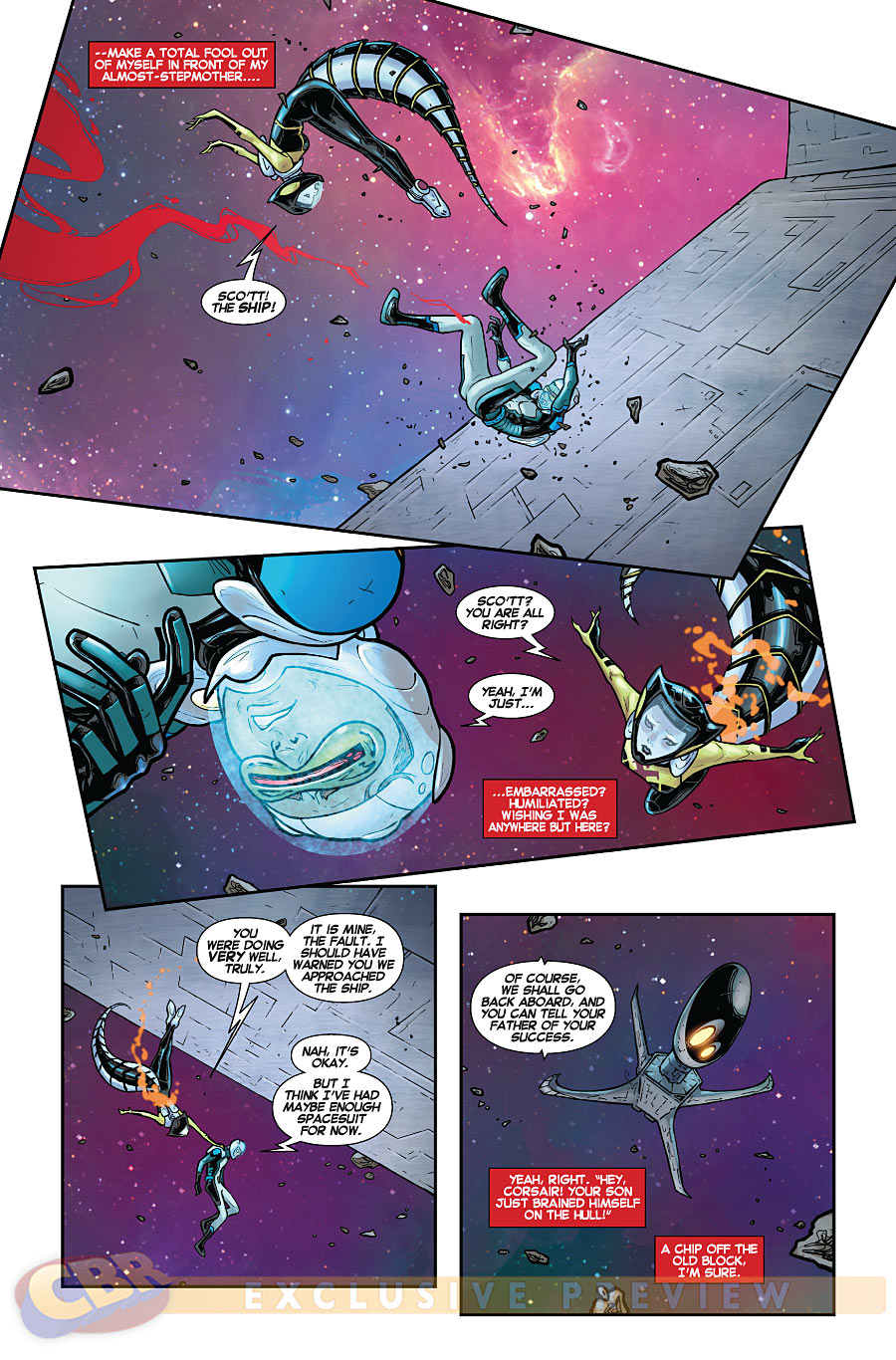 Tiene su gracia, y así la faceta cósmica de la Patrulla-X no se deja tan al margen. Que parece que los únicos que salen al espacio últimamente son los Vengadores.