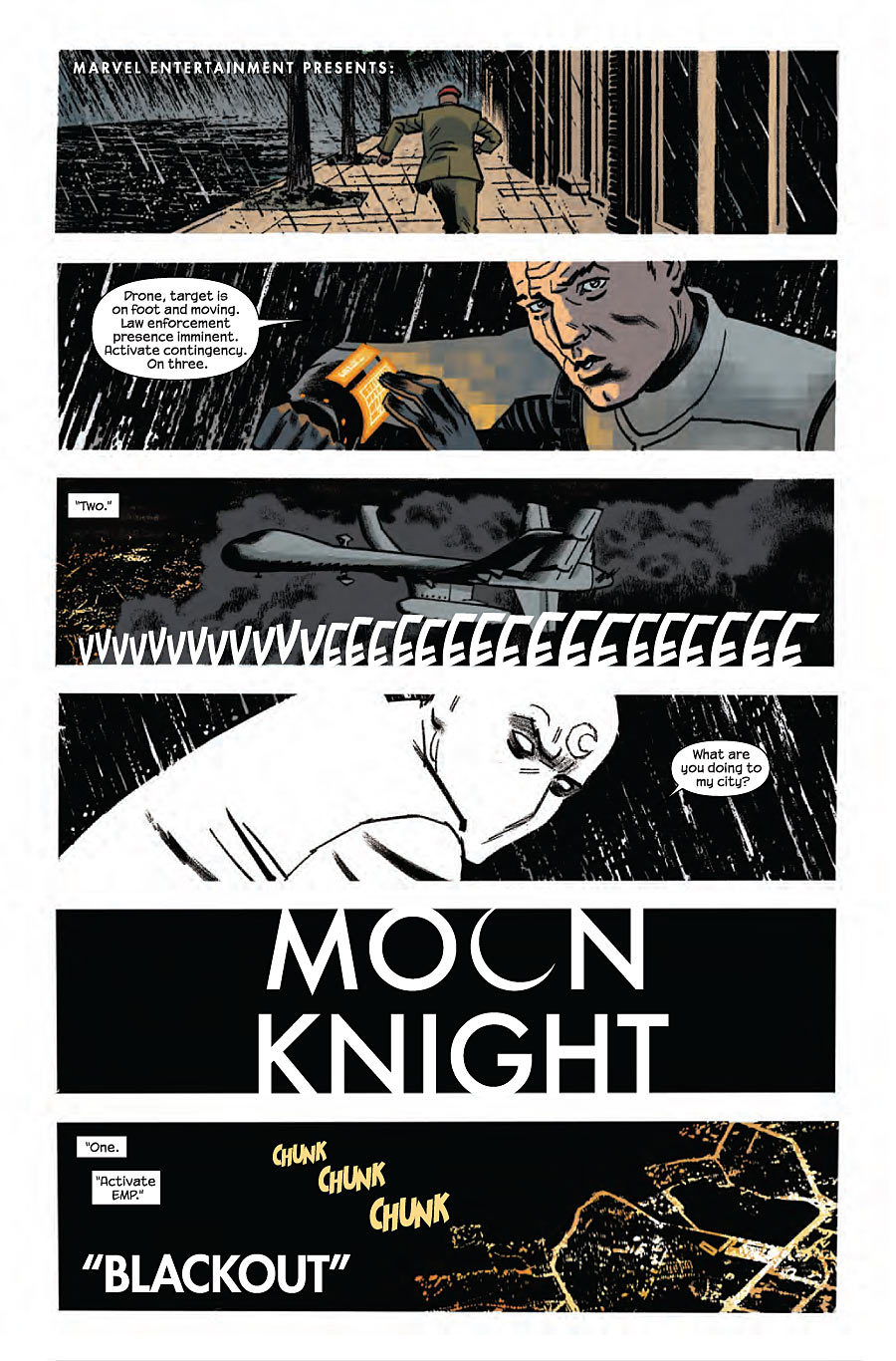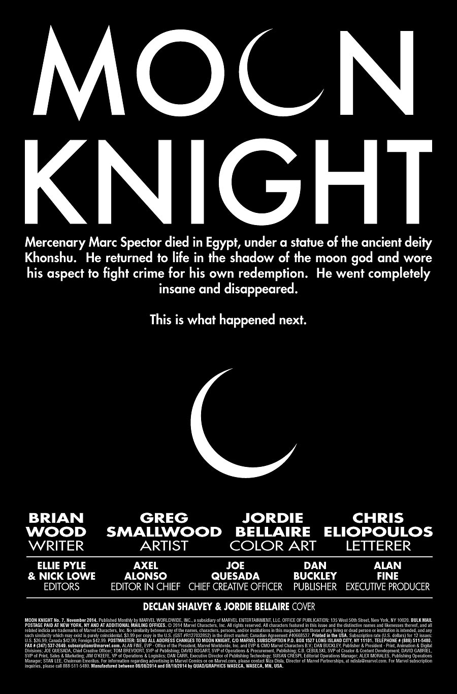 Brian Wood (X-MEN, DMZ) se hace con los mandos del guión recogiendo las cosas donde las dejó Ellis, con preguntas que proceden de Moon Knight #1 y que se amplifican 100 veces.