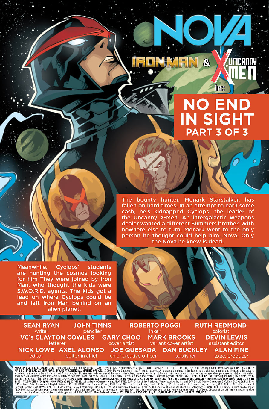 Conclusión del cruce entre Uncanny X-Men, Iron Man y Nova titulado «No end in sight».
