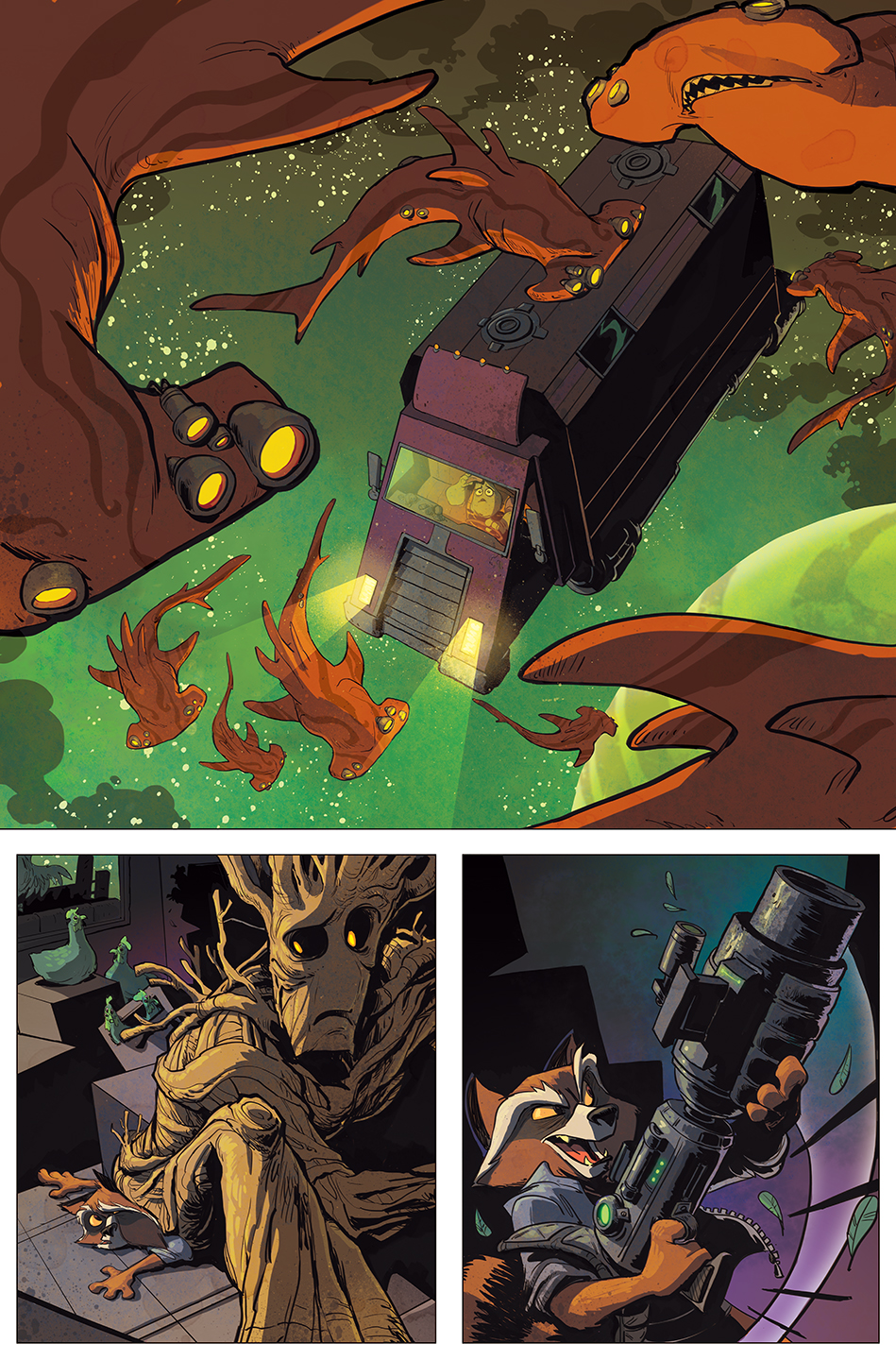 Este mes de junio (USA), el más famoso árbol del Universo Marvel será protagonista de su propia serie! Así es, GROOT # 1 está llegando, y no querrás perderte este emocionante paseo fuera de este mundo. El escritor estrella Jeff Loveness (Jimmy Kimmel Live, Amazing Spider-Man Special) se une a la futura superestrella Brian Kesinger (Disney Animation) para un viaje galáctico de proporciones épicas. Pero no es todo diversión y juegos cuando, por primera vez en años, Groot se separe de su amigo (y traductor) Rocket Raccoon. ¿Podrá hacer él solo su propio camino en una galaxia grande y aterradora? Armado sólo con las palabras «I», «Am» y «Groot» – está a punto de embarcarse en un nuevo tipo de aventura. Explosiones! Aliens! Tiburones del espacio! Y esto es sólo el primer número! Manten los ojos bien abiertos en el resto de la serie y te podrás encontrar un par de estrellas invitadas intergalácticas! Estallando en acción, aventura, emoción y corazón. Los aficionados no querrán perderse esta nueva y emocionante serie! Prepárate para grandes aventuras en el espacio profundo este mes de junio cuando GROOT # 1 brote en las tiendas de cómics este junio (USA)!