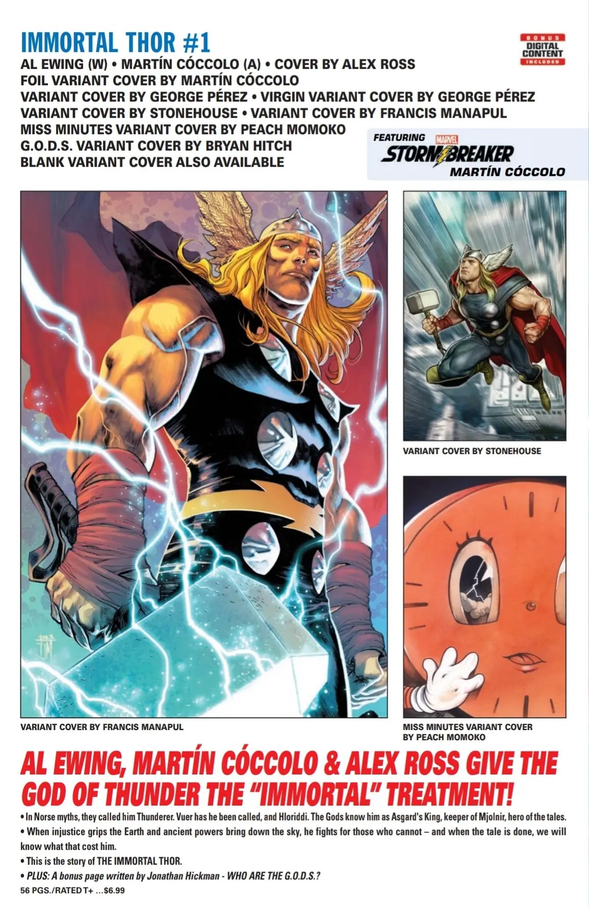 En los mitos nórdicos le llaman Thunderez, Vuer se le ha llamado, y también Hloriddi. Los Dioses le conocen como el Rey de Asgard, poseedor de Mjolnir, el héroe de las historias. Cuando la injusticia aprieta a la Tierra y los ancianos poderes hacen que los cielos se derrumben, él luchará por aquellos que no pueden… Y cuando el relato haya concluido, sabremos qué coste tendrá para él. Esta es la historia del Inmortal Thor.