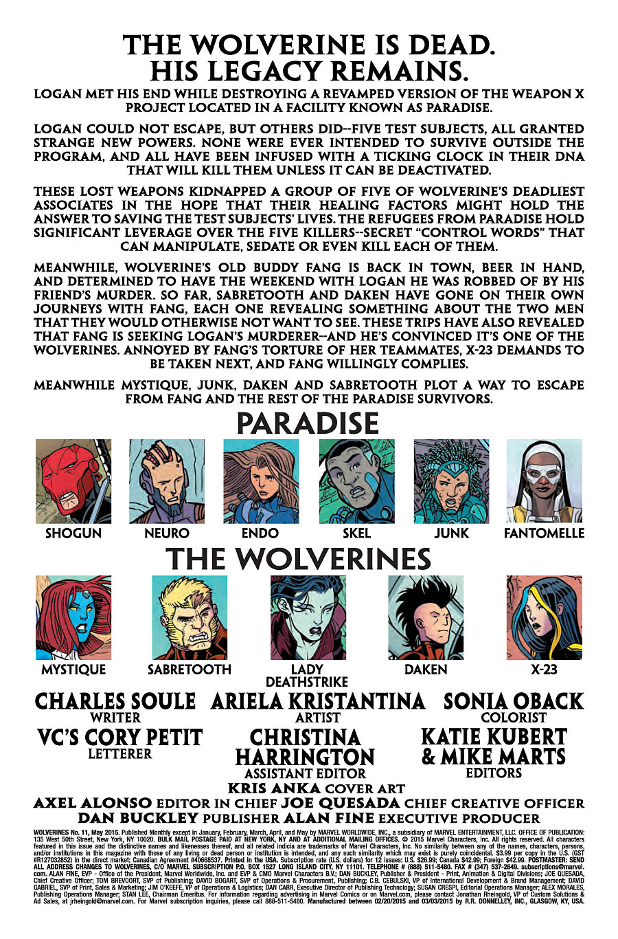 A continuación tienes las portadas y las primeras páginas de todos los comic-books que Marvel pondrá a la venta este miércoles, 18 de Marzo de 2015.
