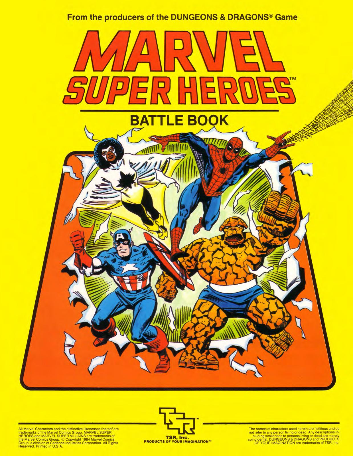 El paquete básico incluía un Manual de Batalla (Battle Book), un Manual de Campaña (Campaign Book), piezas identificativas de los personajes, dos dados de diez caras, y un mapa describiendo una zona específica de Manhattan donde iba a transcurrir la acción. Todo ello venía recogido en una caja de cartón con portada de John Romita senior.