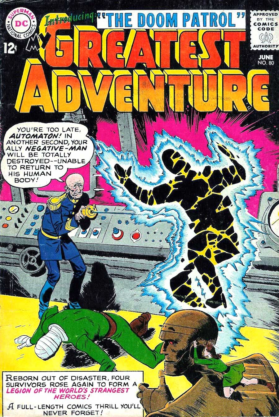 Según reza en los archivos de registro de copyright, el debut de la Doom Patrol tuvo lugar el 18 de abril de 1963 en las páginas de My Greatest Adventure # 80 USA. Dos meses y medio después se comercializaría el primer comic protagonizado por los Hijos del Átomo. Aunque inicialmente Drake dio por buena la versión de Stan Lee, luego cambió de opinión. Pensaba que tantas coincidencias resultaban excesivas, máxime porque también se hacían extensibles a los villanos… ¡Que la Hermandad del Mal de la Doom Patrol tuviera su réplica marveliana en la Hermandad de Mutantes Diabólicos ya le parecía demasiada casualidad!