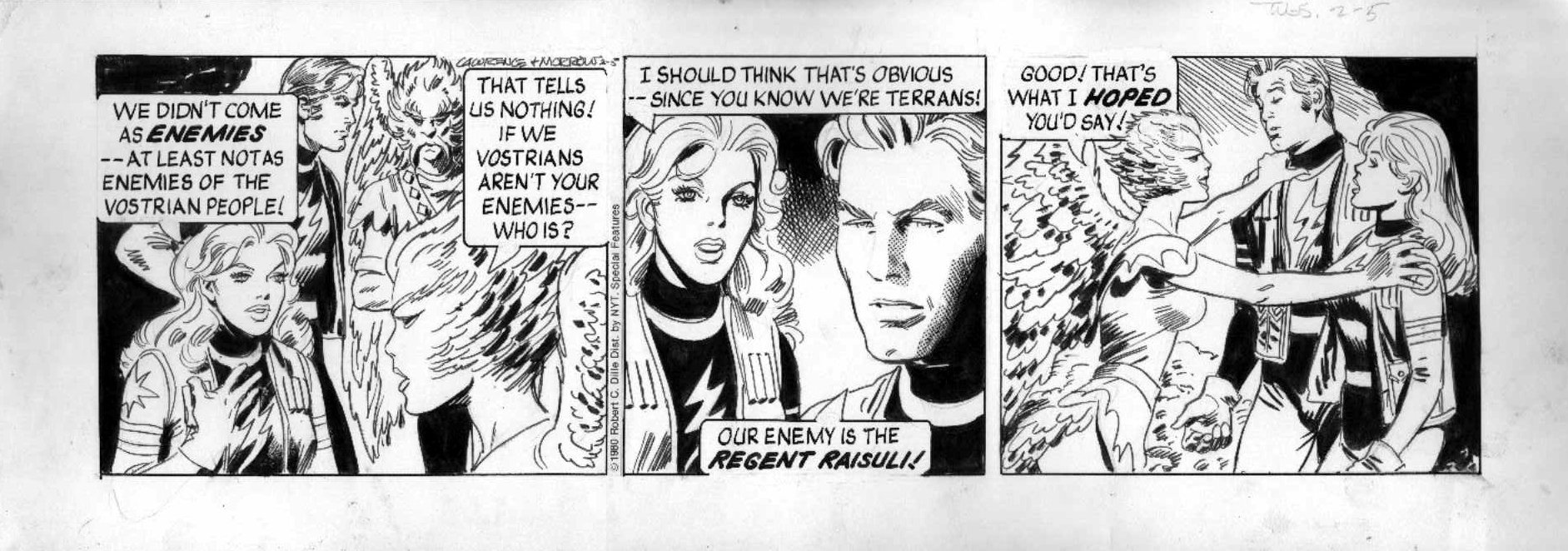 Paralelamente, aquel mismo mes se programó el revival de las tiras de prensa de Buck Rogers, con textos de Jim Lawrence y dibujos de Gray Morrow. Ambos autores repetirían como tándem en un episodio inédito a color que la revista Heavy Metal tuvo a bien incluir a modo de preview en su número de Septiembre.