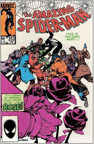 Rick dispuso que La Rosa llevara unos guantes idénticos, subrayando dicho detalle al introducir al capo gangsteril en la portada de Amazing Spider-Man # 253 USA. Aunque para mí la conexión parecía bastante obvia, faltaba que el propio dibujante la ratificara. No me consta que en ningún sitio se haya publicado nada acerca de esta cuestión, así que supongo que podemos anotarlo como una pequeña exclusiva CB!