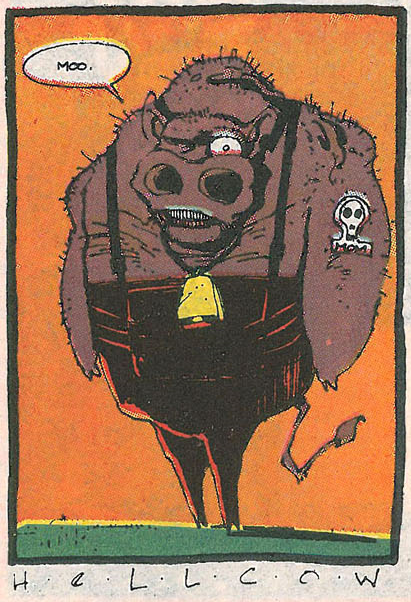 En mi opinión, el personaje bovino que tenía más potencial era el Hellcow de Mignola. Su diseño era realmente original, con cencerro y todo. Y ese tatuaje en el brazo donde puede leerse la inscripción «Mamá».