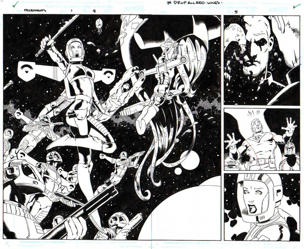 La idea era hacer coincidir el lanzamiento de la cabecera con el estreno de una serie de animación de los Micronautas que se estaba poniendo en marcha justo por aquellas fechas. No obstante, ninguno de los dos proyectos salió adelante. Y eso que el primer episodio del comic se había completado del todo: guión, dibujo, entintado, color y rótulos… ¡Los materiales estaban ya listos para ir a imprenta! Los dos siguientes episodios también se habían escrito, dibujado y entintado. ¡Por increíble que parezca, existen tres números enteritos de Micronauts The Lost Voyages producidos por Marvel que jamás han podido ser publicados!