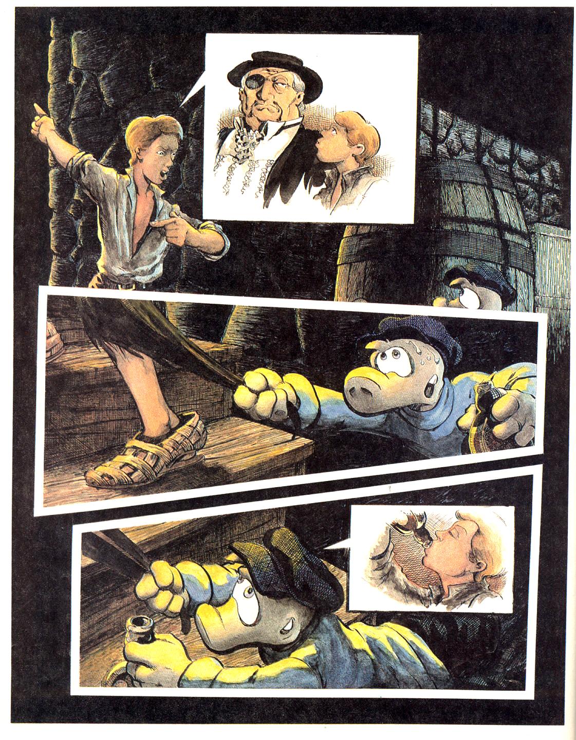 De esto de los Starriors no me acordaba yo (ni de los cómics ni de los muñecos), sí de la adaptación al cómic de Sheena, pues Gray Morrow (muy poco conocido en España) es de mis dibujantes favoritos entre los injustamente poco reivindicados…de las adaptaciones cinematográficas marvelitas Fórum sí publicó la de Tarzán por Dan Spiegle, pero no la de Sheena por Morrow (ambas películas fueron muy poco apreciadas en España, no me duelen prendas en añadir que un tanto merecidamente), dibujante por dibujante yo diría que a la inversa habríamos salido ganando… sí recuerdo que se publicó en grapa la de Hook (hasta diría que me gustó más el cómic, con Charles Vess y todo un escuadrón de dibujantes y entintadores que la película), también la de Darkman (Ralph Macchio/Bob Hall,… que junto con las de Star Wars, Indiana Jones y Aliens es de las pocas adaptaciones reeditadas en la propia EEUU), Dune (Ralph Macchio/Bill Sienkiewicz, aunque esta salió acá como album en rústica, al igual que El retorno del Jedi). Battlestar Galactica ,(Roger McKenzie/Ernie Colón) en su día en cambio la publicó Bruguera, que sacó también Star Wars (que pasó también por Surco y Fórum), Alien (ese Simonson!), Encuentros en la Tercera Fase (Archie Goodwin/Walt Simonson)…nos quedamos en cambio sin edición española de Time Bandits (Steve Parkhouse/David Lloyd), la ahora de nuevo de moda The Dark Crystal (David Anthony Kraft, Brett Blevins, Richard Howell, Rick Bryant y Vinnie Colletta), Labyrinth (Dos Jacobson/John Buscema), Howard The Duck (Danny Fingeroth/Kyle Baker) o Meteor (Ralph Macchio/Gene Colan/Tom Palmer…de esta sí que no me importaría que se sacase una Artist Edition, estupendos lápices de Colan)…Aunque el que me conozca sabe que de lo que me entristece no tener una edición española completa es del 2001 de Kirby, de la cómic strip de The Black Hole (este serial de prensa Disney no tiene conexión marvelita) también de Kirby y del Blade Runner de Goodwin y Williamson. Y a ver si Planeta tiene a bien completarnos la cómic strip de Star Wars, que falta la gloriosa etapa de Goodwin y Williamson…en el segundo tomo tendríamos además al bueno de Alfredo Alcalá antes de que recalase el gran Al.