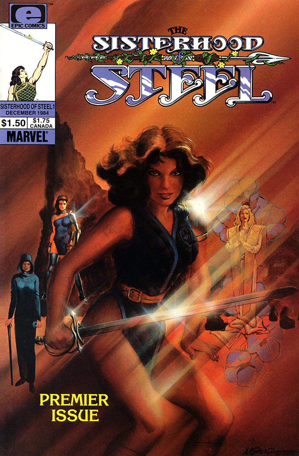 5 de Octubre. Sisterhood of Steel se suma a la creciente lista de lanzamientos de la línea Epic. La Hermandad del Acero a la que alude el título la integran unas guerreras mercenarias creadas por la guionista Christy Marx. Posteriormente se asignaría a Mike Vosburg la realización artística de esta serie de espada y brujería con toque «femenino». ¡Aquí la portada a destacar está pintada por Mike Saenz!